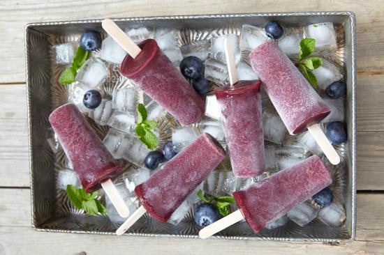 Обои Вкусное черничное мороженое на палочке в лотке со льдом