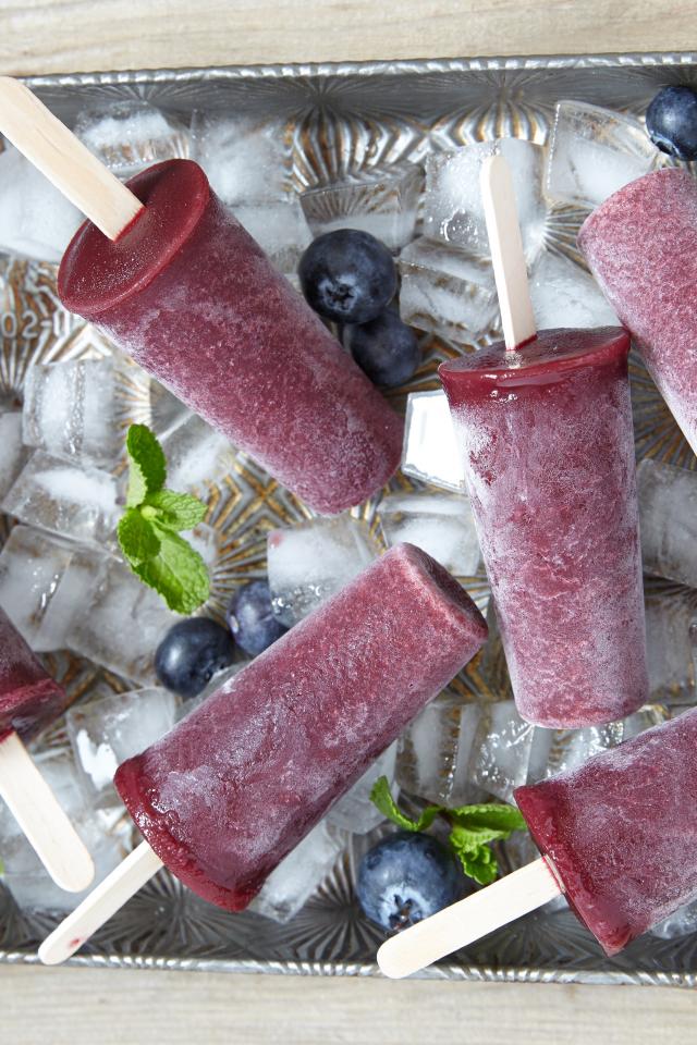 Обои Вкусное черничное мороженое на палочке в лотке со льдом