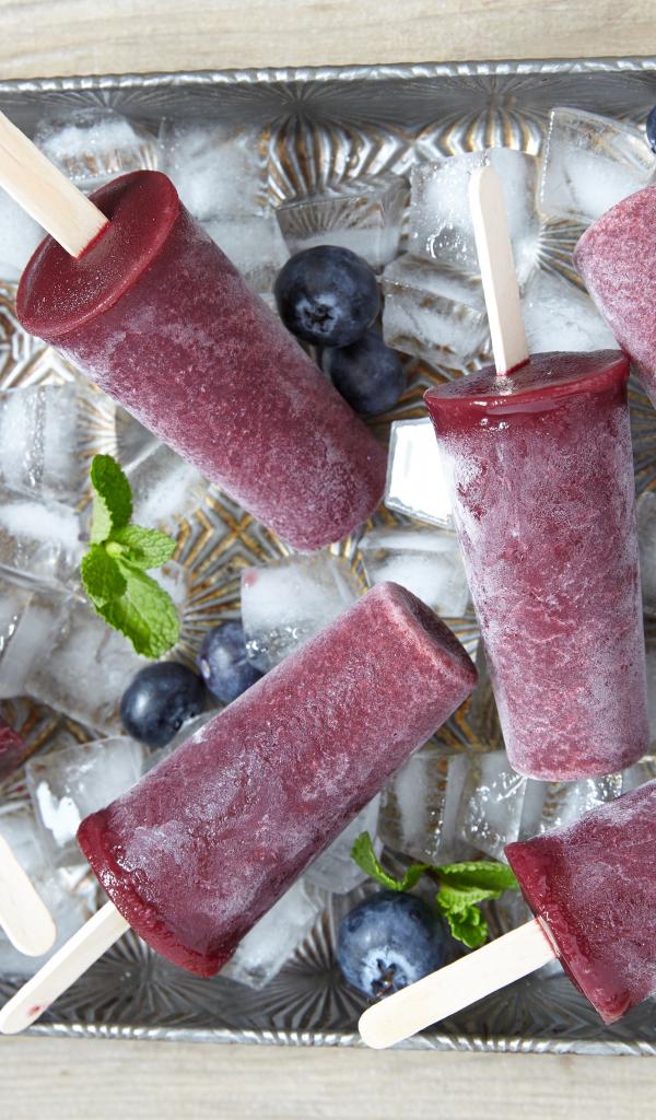 Обои Вкусное черничное мороженое на палочке в лотке со льдом