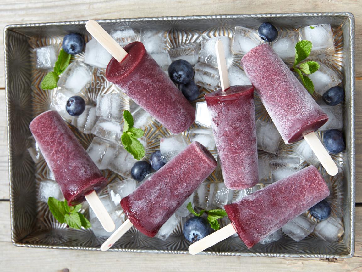 Обои Вкусное черничное мороженое на палочке в лотке со льдом