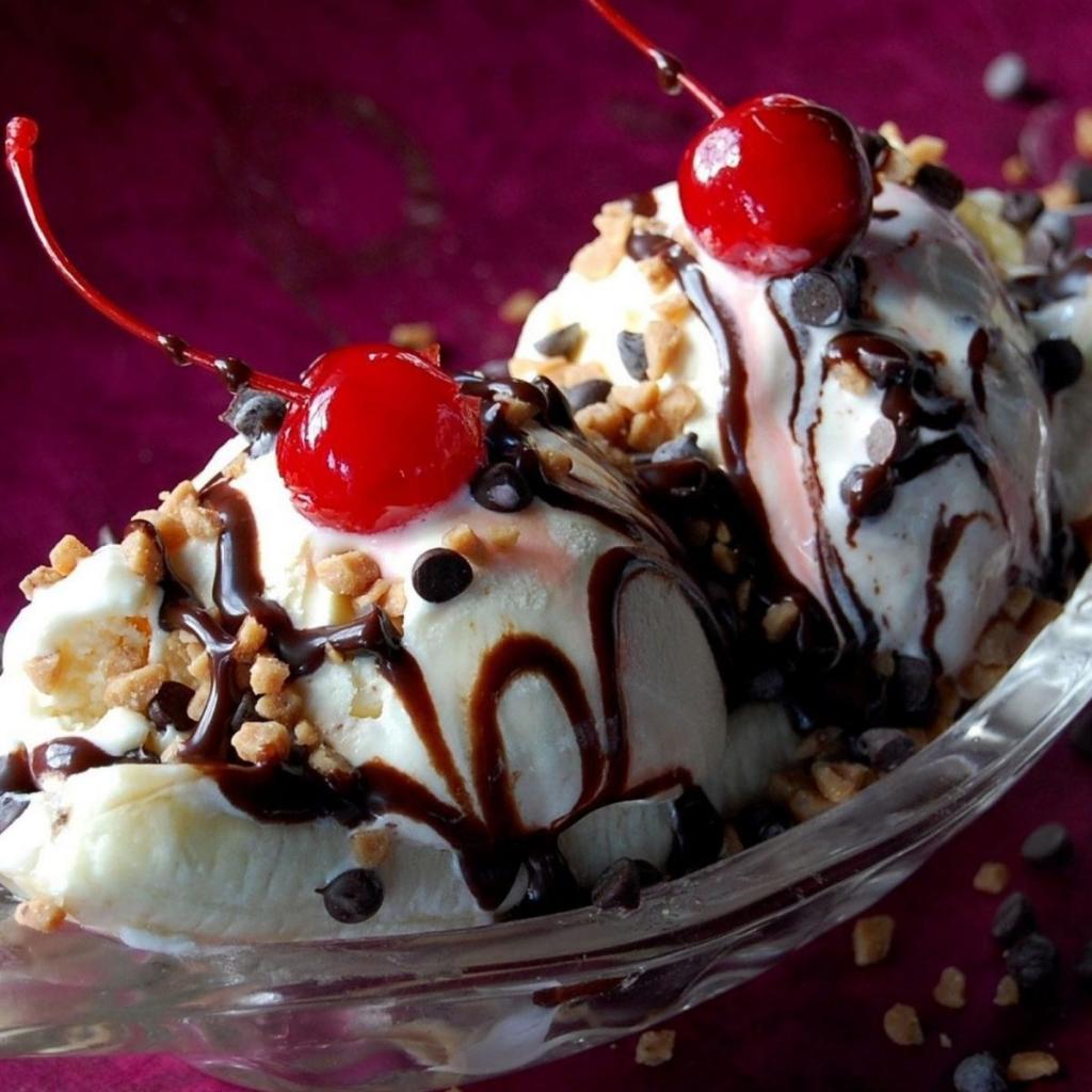 Обои Два шарика мороженого с шоколадом и вишней