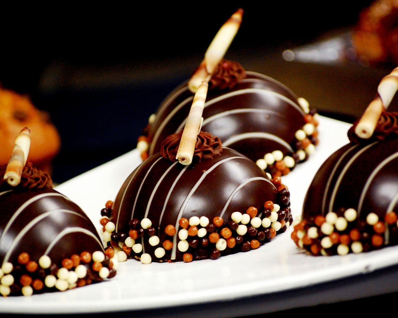 Обои Шоколадные пирожные в глазури на десерт