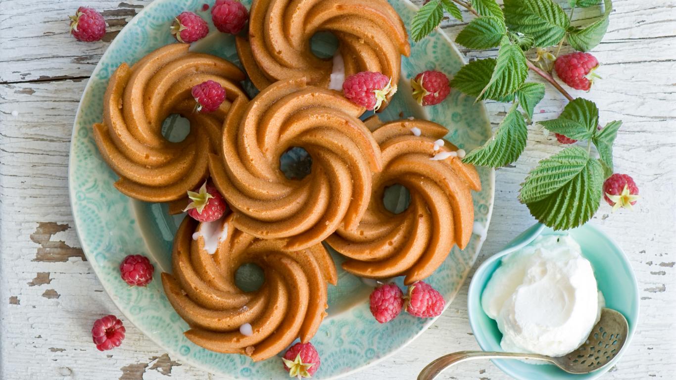 Обои Песочное печенье на тарелке с ягодами малины