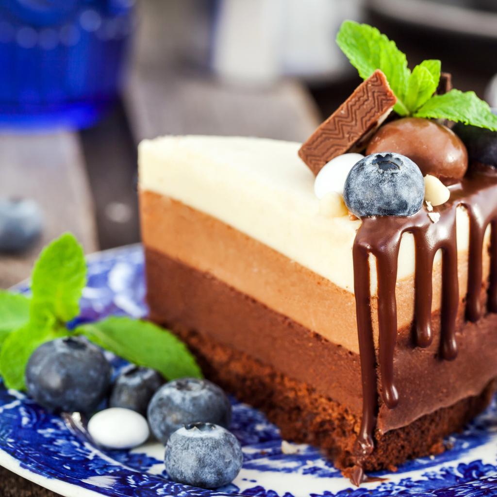 Обои Торт три шоколада с ягодами черники