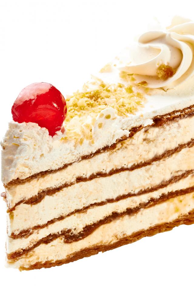 Обои Пирожное с суфле и сливками на белом фоне