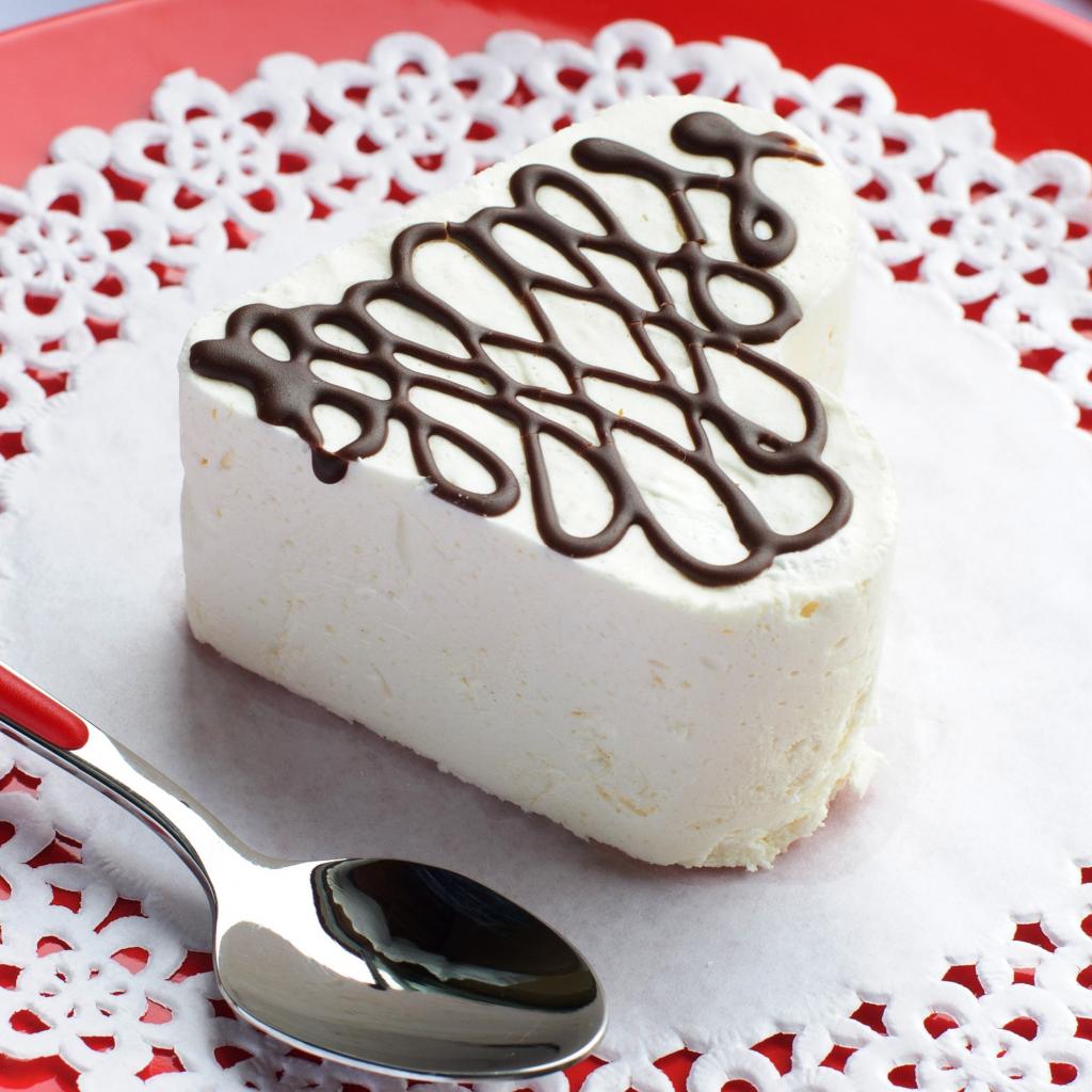 Обои Белое пирожное в форме сердца с шоколадом