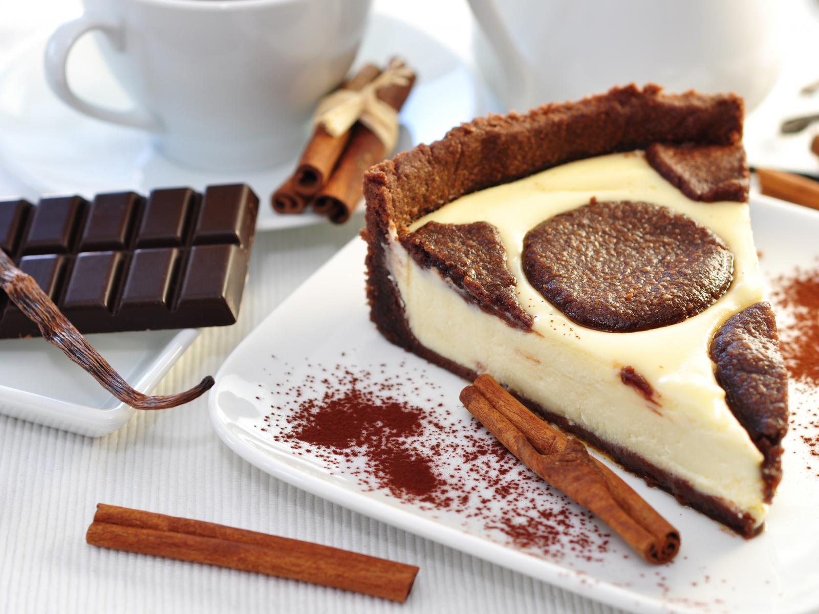 Обои Чизкейк с шоколадом, печеньем и корицей