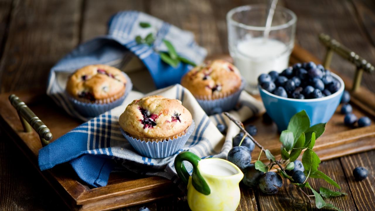 Обои Аппетитные кексы на столе с ягодами терна