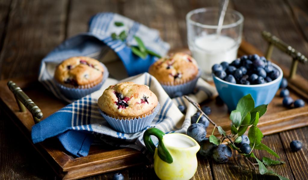 Обои Аппетитные кексы на столе с ягодами терна