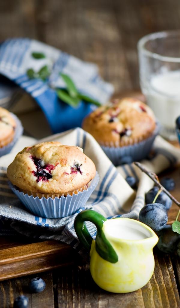 Обои Аппетитные кексы на столе с ягодами терна