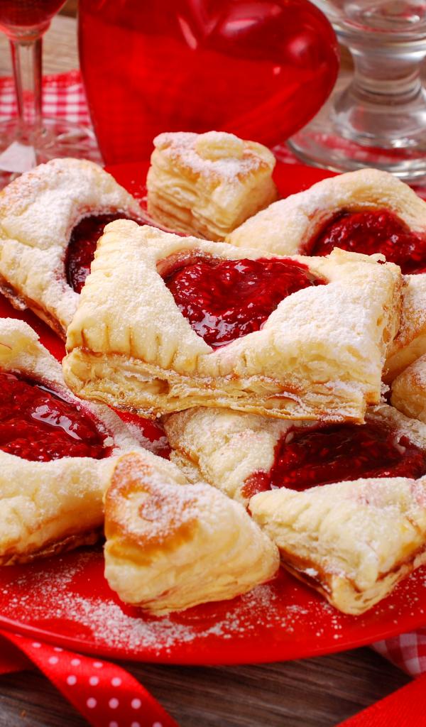 Обои Слоеное печенье с вареньем и красной розой