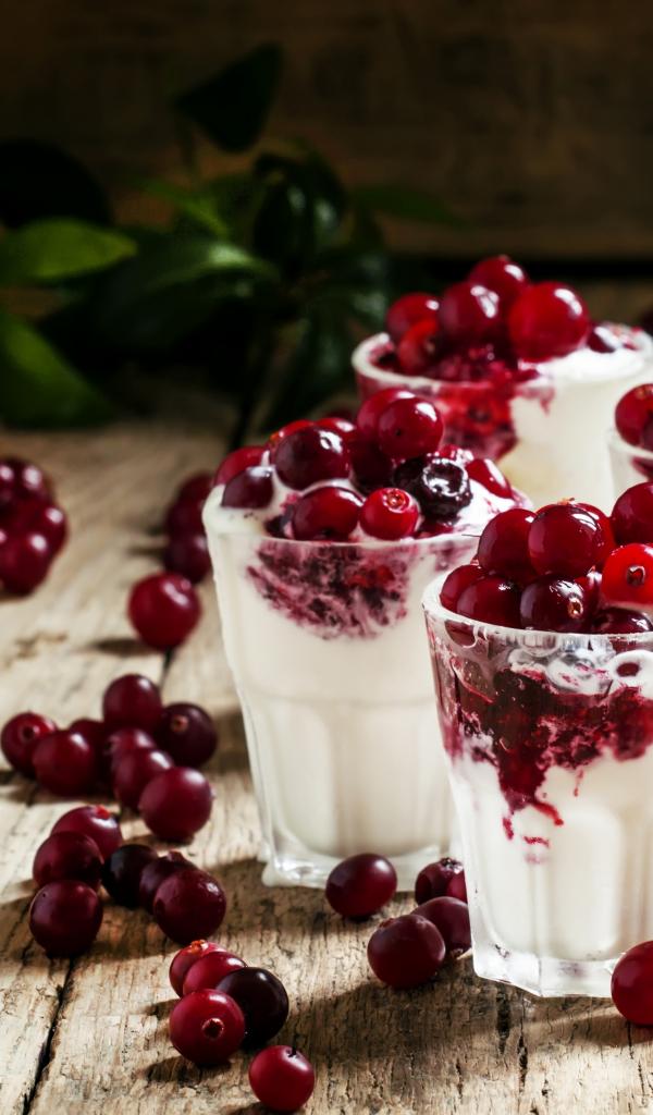 Обои Сладкий десерт с клюквой в стеклянных стаканах
