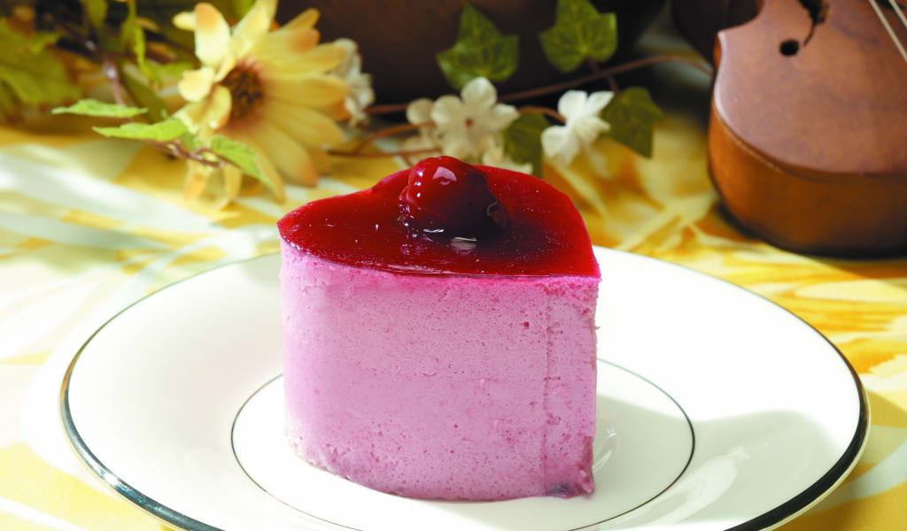 Обои Пирожное суфле в форме сердца на тарелки