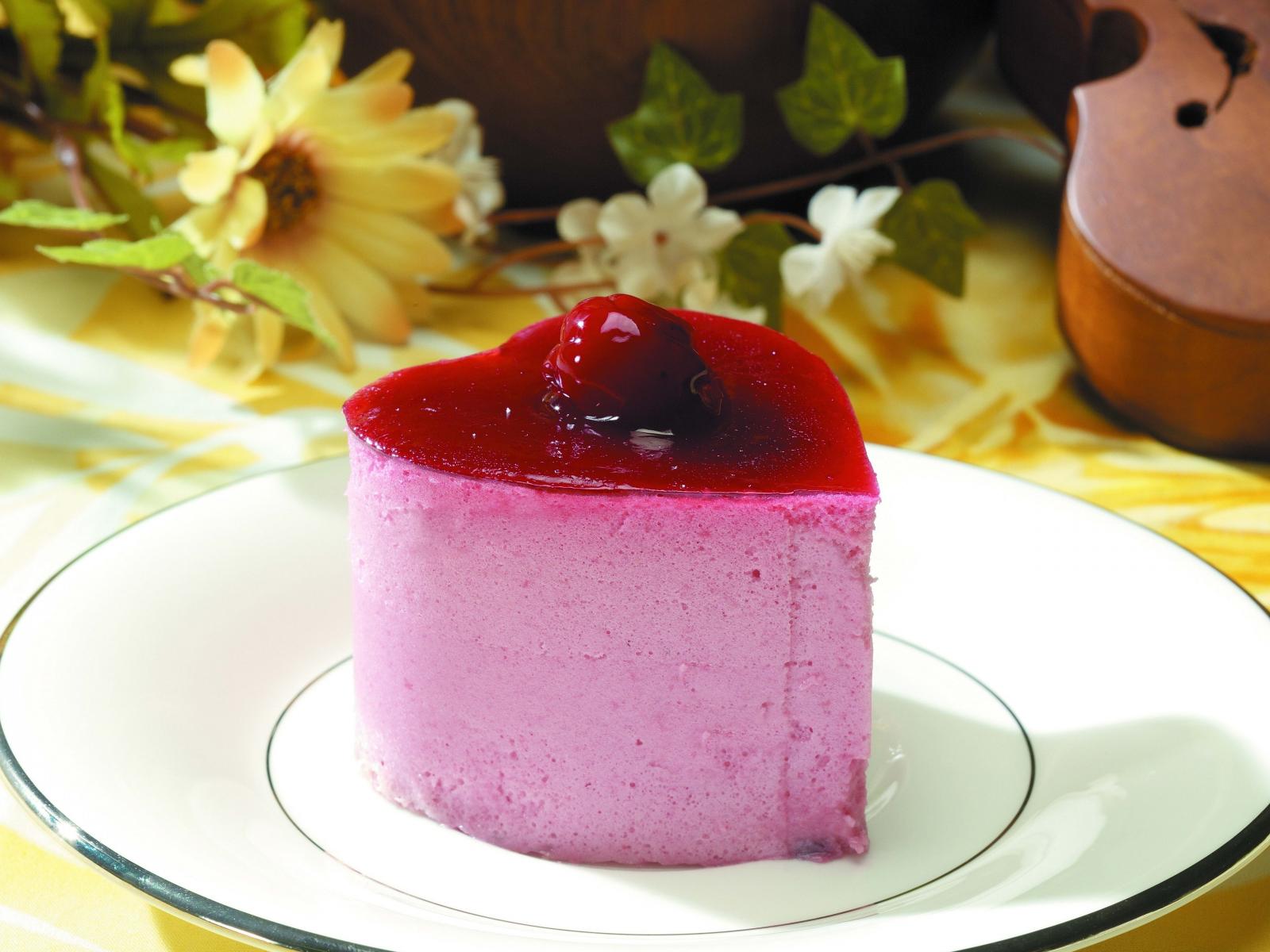 Обои Пирожное суфле в форме сердца на тарелки