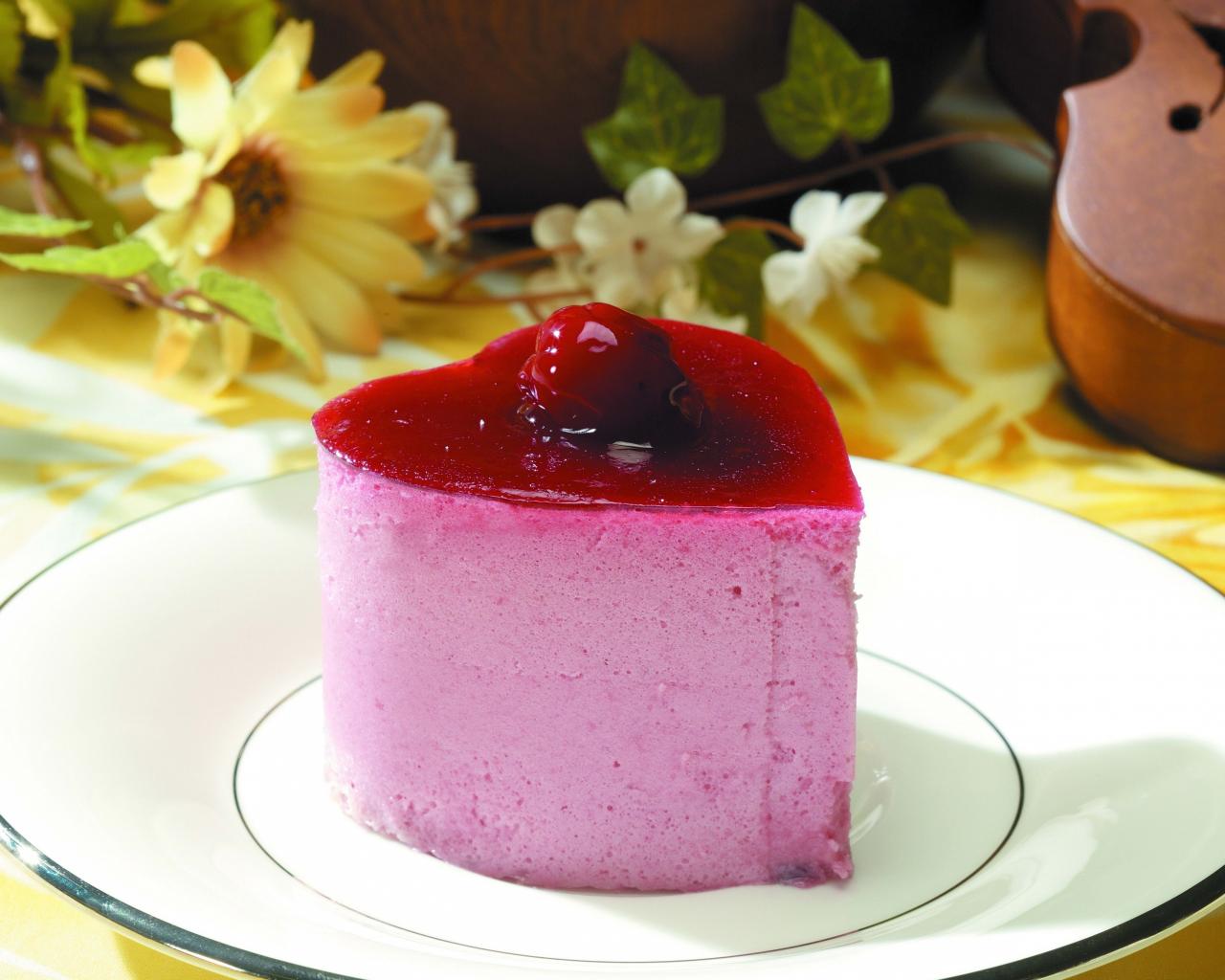 Обои Пирожное суфле в форме сердца на тарелки