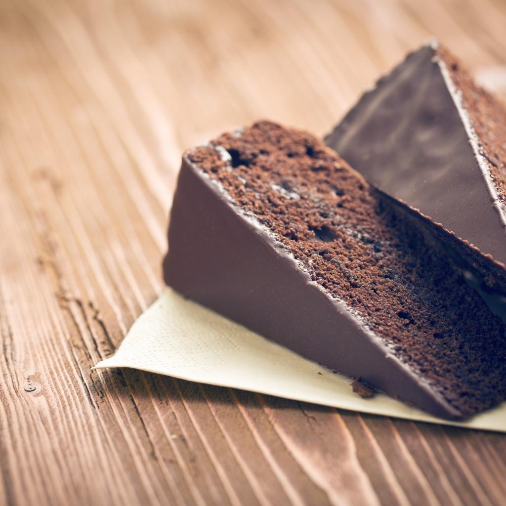 Обои Два кусочка шоколадного торта на столе