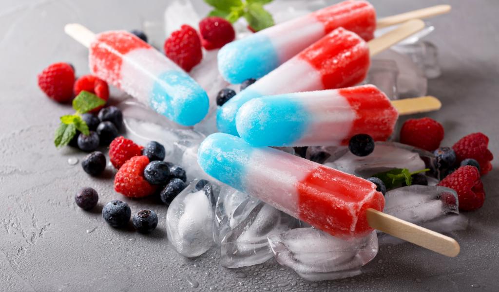 Обои Трехцветное фруктовое мороженое лежит на кусочках льда