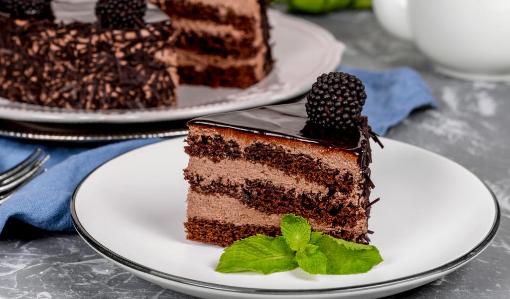 Обои Аппетитный торт с шоколадом и кремом на тарелке