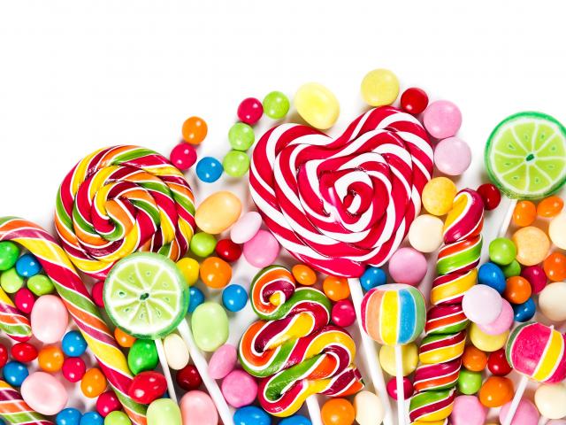Обои Разноцветные леденцы на белом фоне