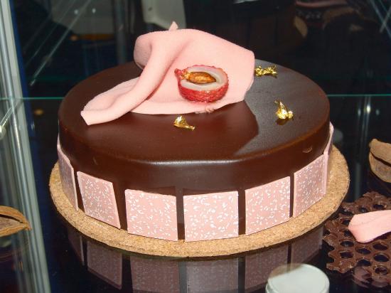 Обои Красивый шоколадный торт с розовыми вставками
