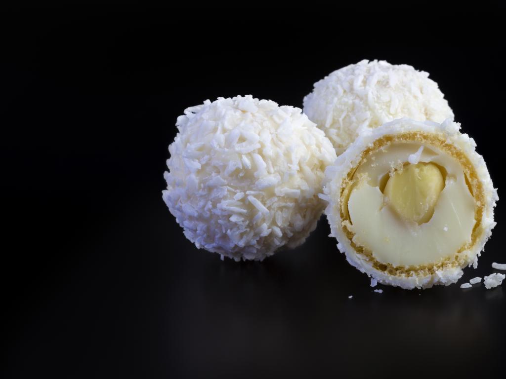 Обои Конфеты раффаэлло на черном фоне