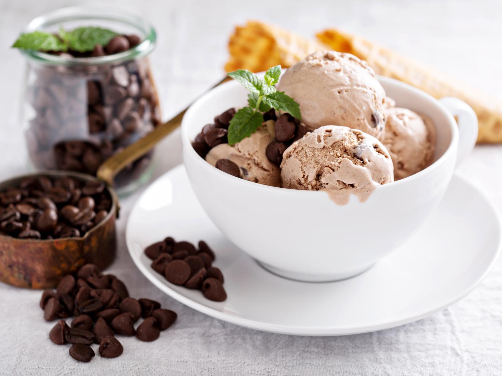 Обои Шарики шоколадного и сливочного мороженого с трубочками