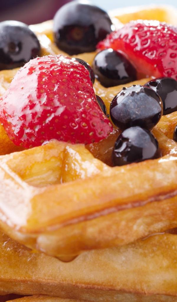 Обои Сладкие медовые вафли с ягодами
