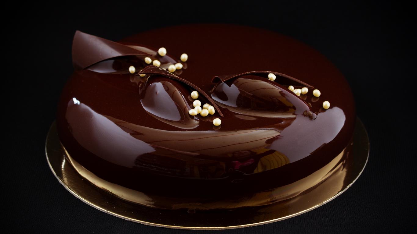 Обои Шоколадный глянцевый торт на черном фоне