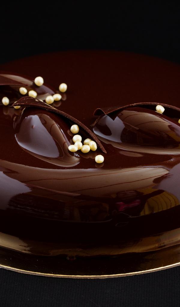 Обои Шоколадный глянцевый торт на черном фоне