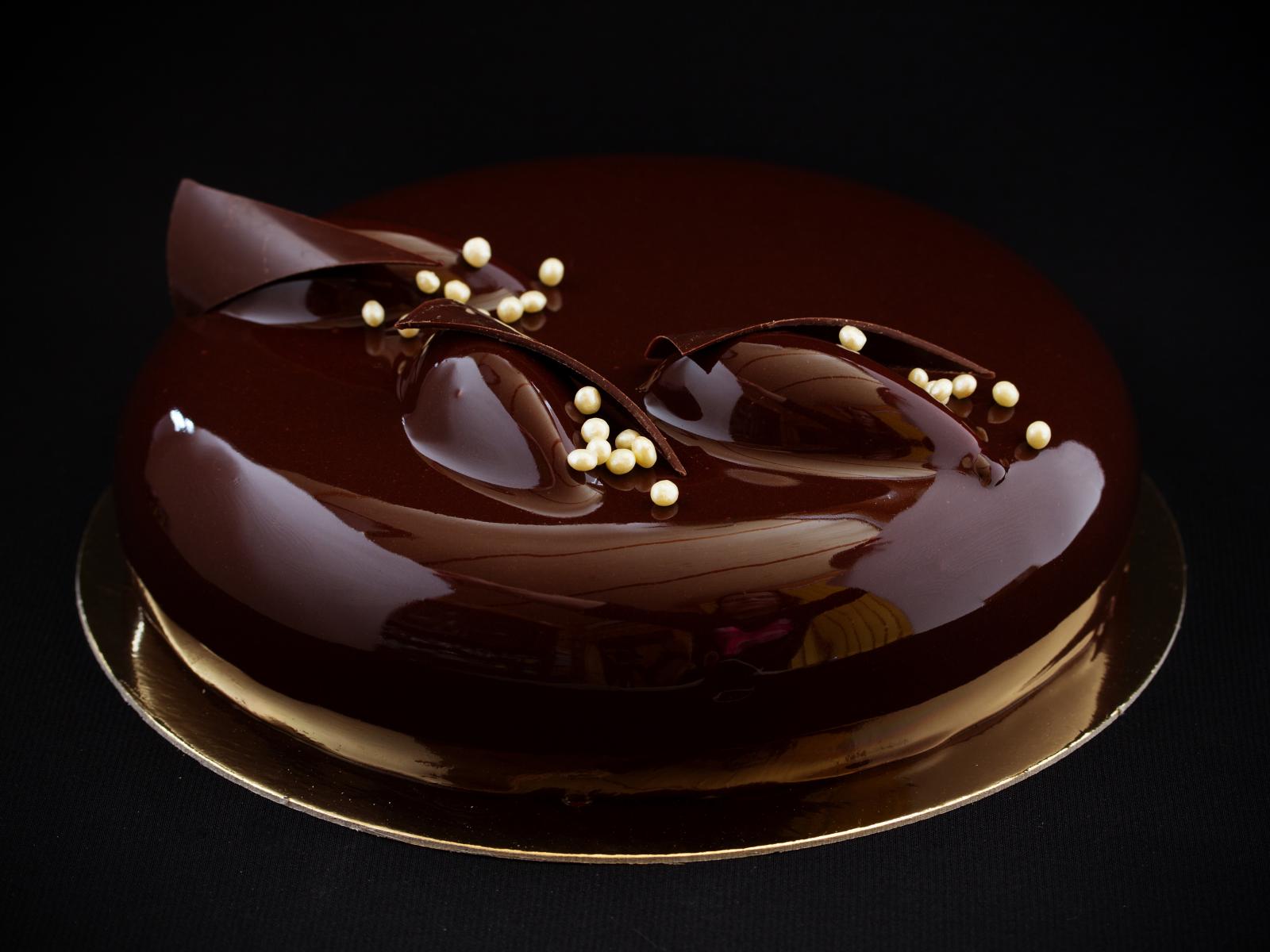 Обои Шоколадный глянцевый торт на черном фоне