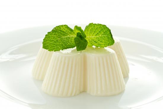 Обои Молочное желе с мятой на белой тарелке