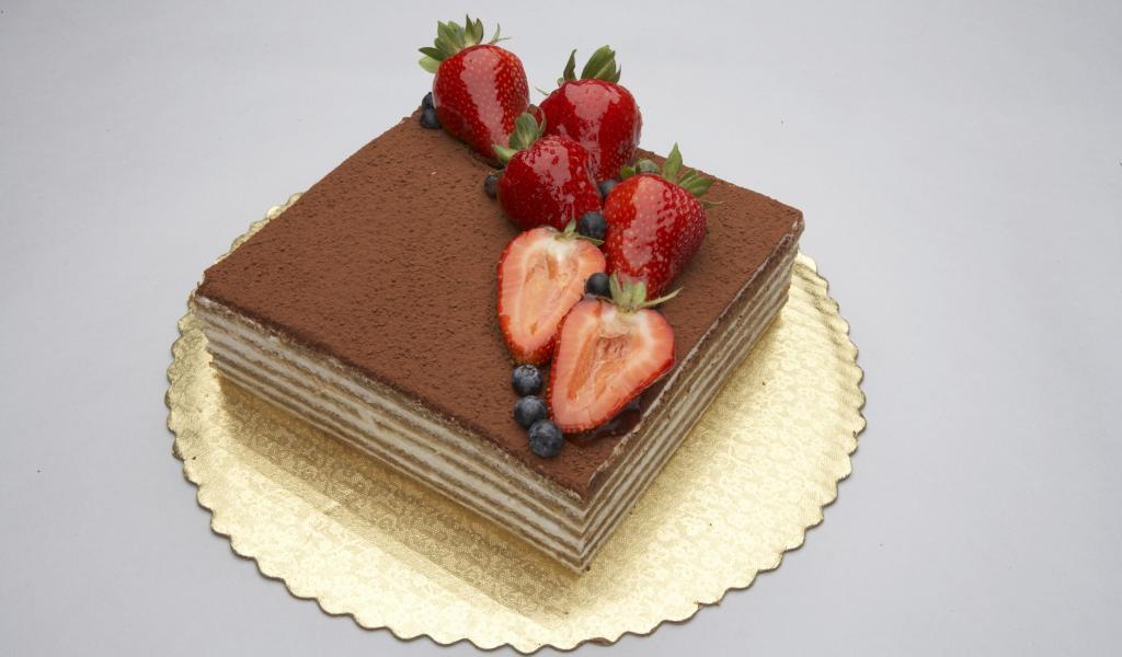 Обои Торт с клубникой и черникой и шоколадом