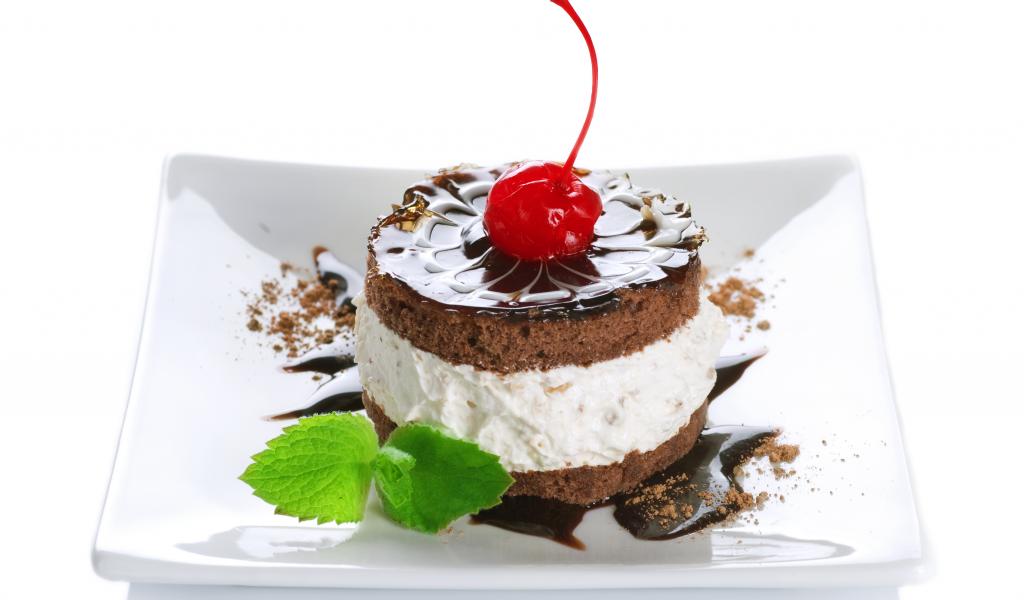 » Обои Аппетитное пирожное с вишней на белом фоне