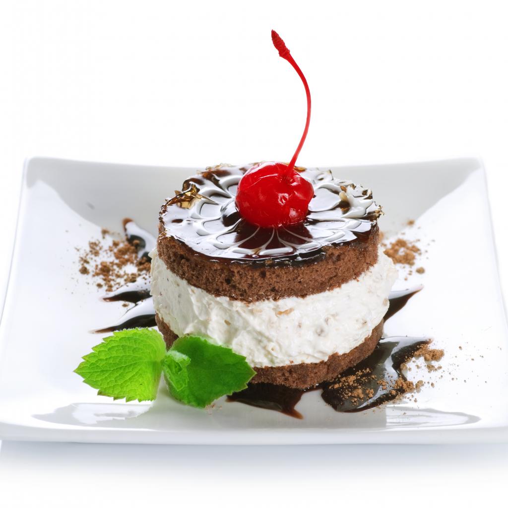 » Обои Аппетитное пирожное с вишней на белом фоне