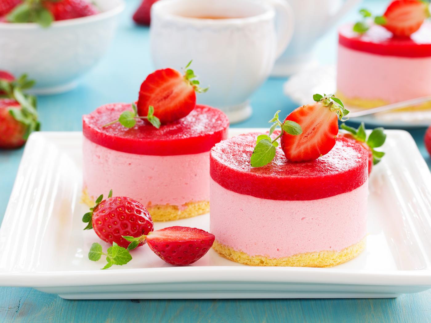 Обои Два пирожных суфле с ягодами клубники