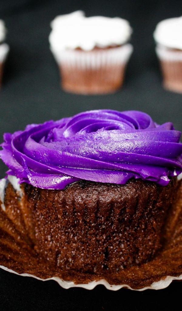 Обои Шоколадный кекс с фиолетовым кремом