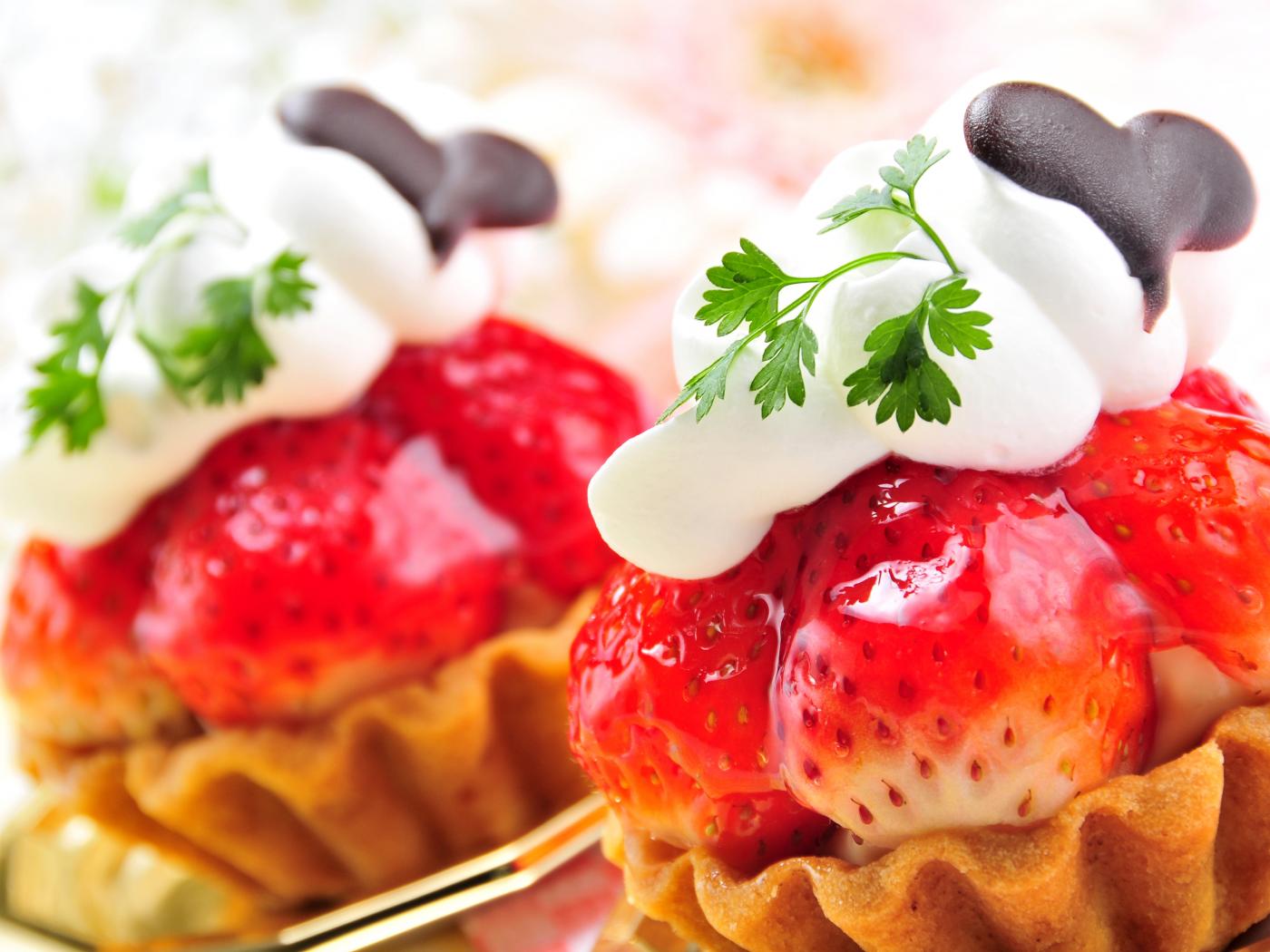 Обои Пирожное с ягодами клубники, сливками и шоколадом