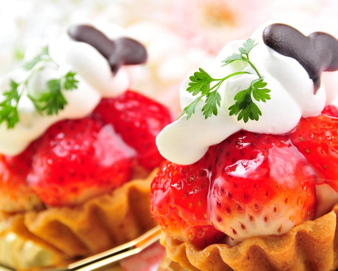 Обои Пирожное с ягодами клубники, сливками и шоколадом