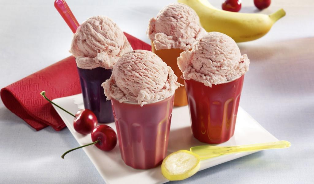 Обои Фруктовое мороженое в стаканчиках на столе
