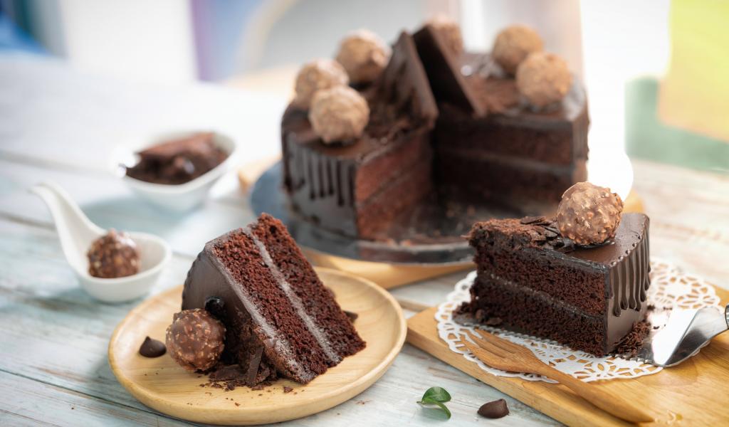 Обои Аппетитный шоколадный торт на столе