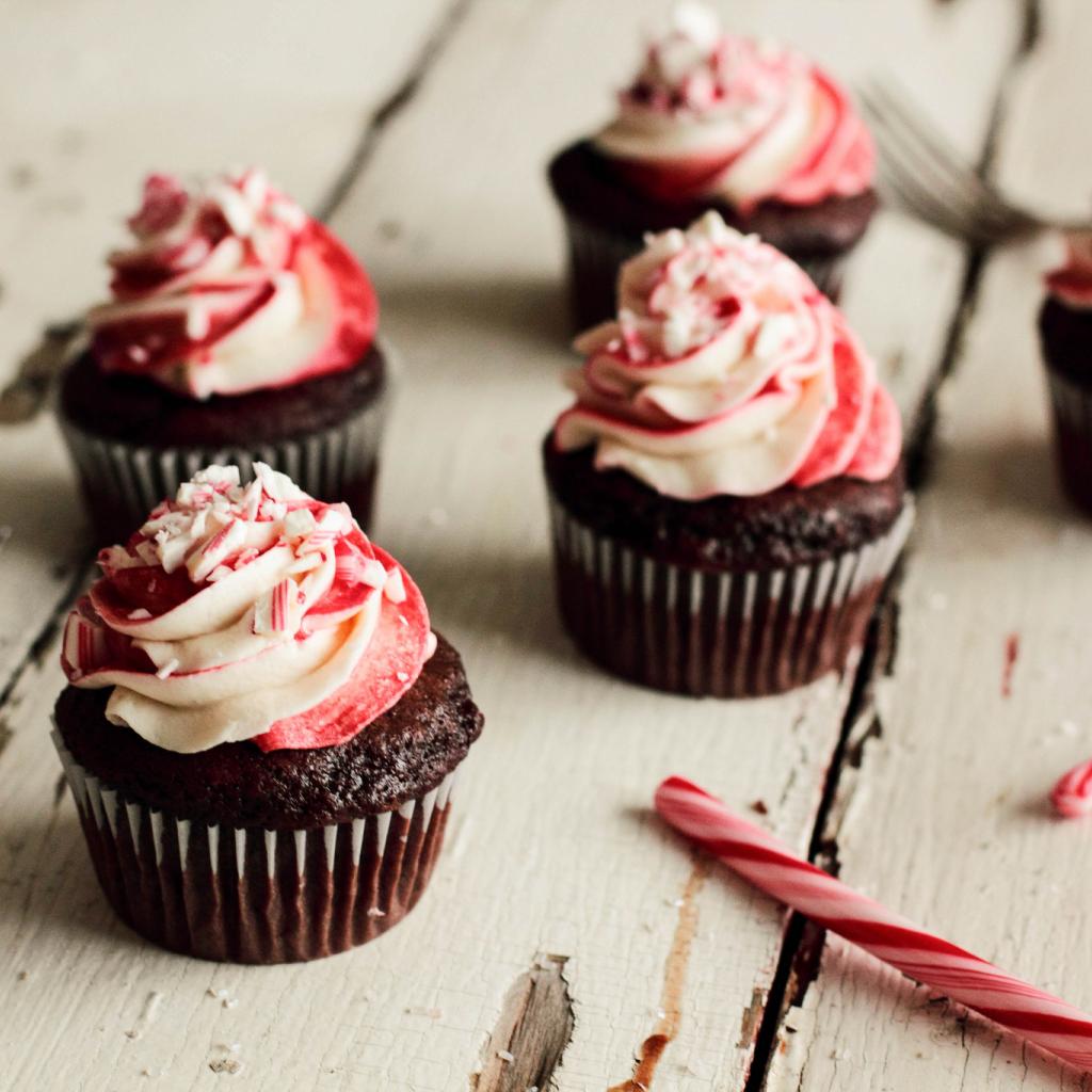 Обои Шоколадные кексы с кремом на деревянном столе