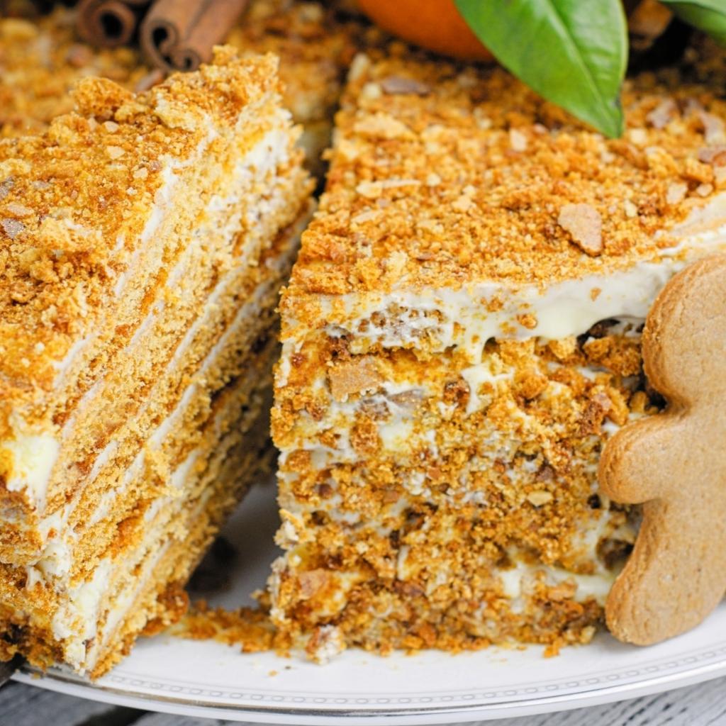 Обои Медовый торт и имбирным печеньем на блюде