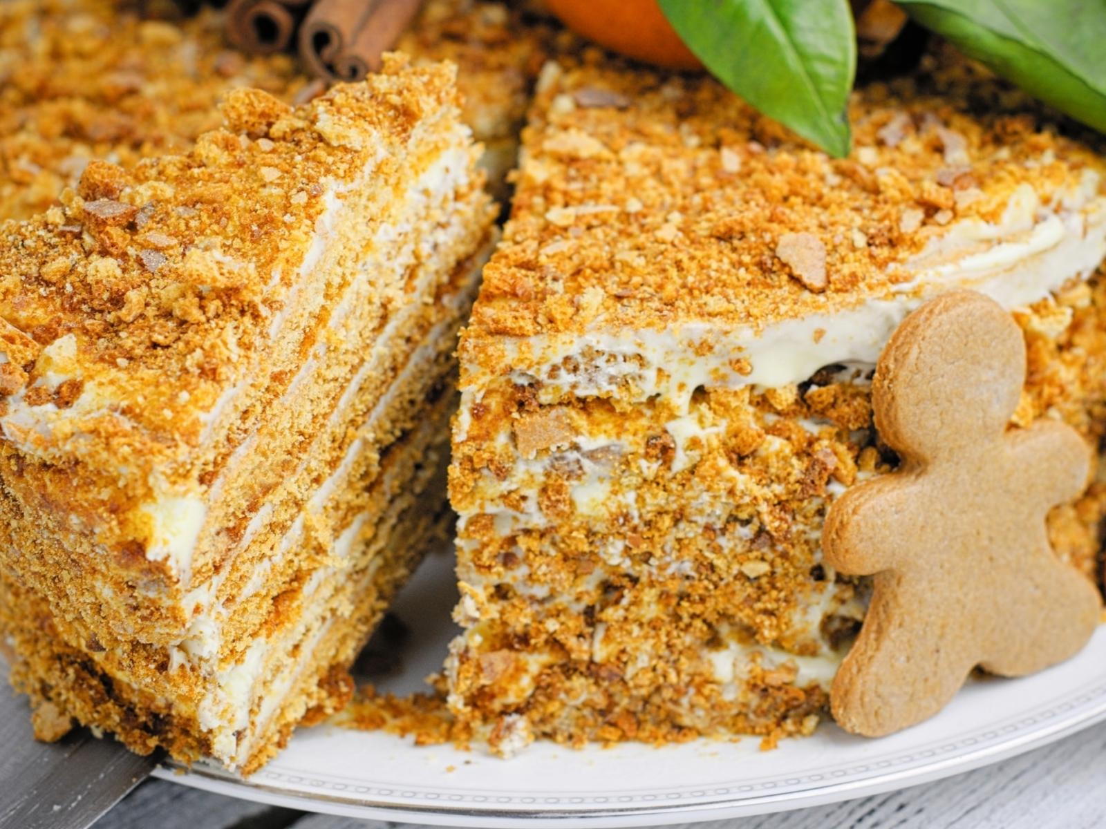 Обои Медовый торт и имбирным печеньем на блюде