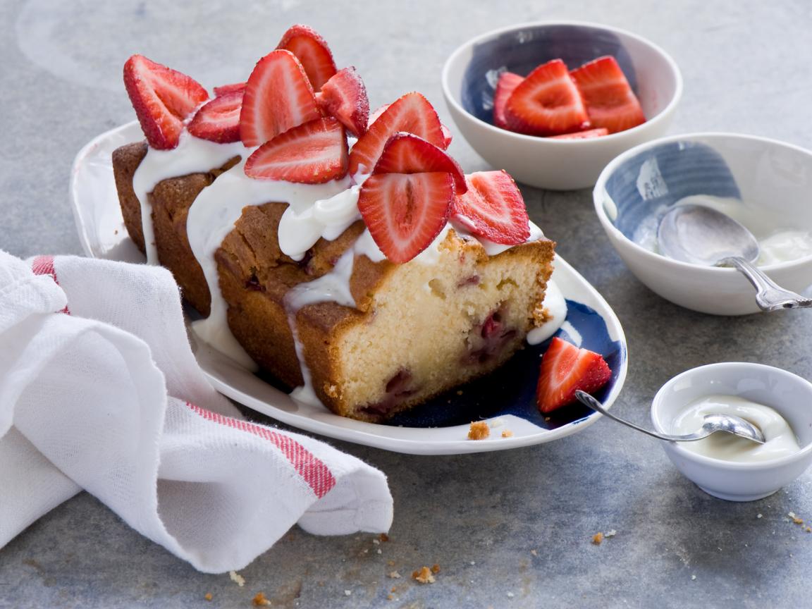 Обои Кекс с кремом на тарелке со свежей клубникой