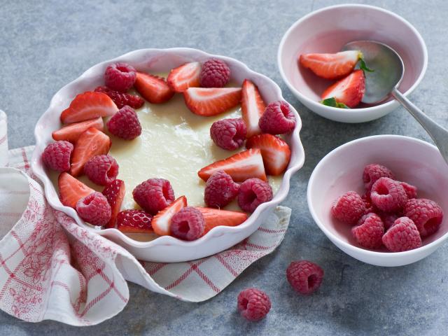 Обои Десерт с ягодами свежей клубники и малины