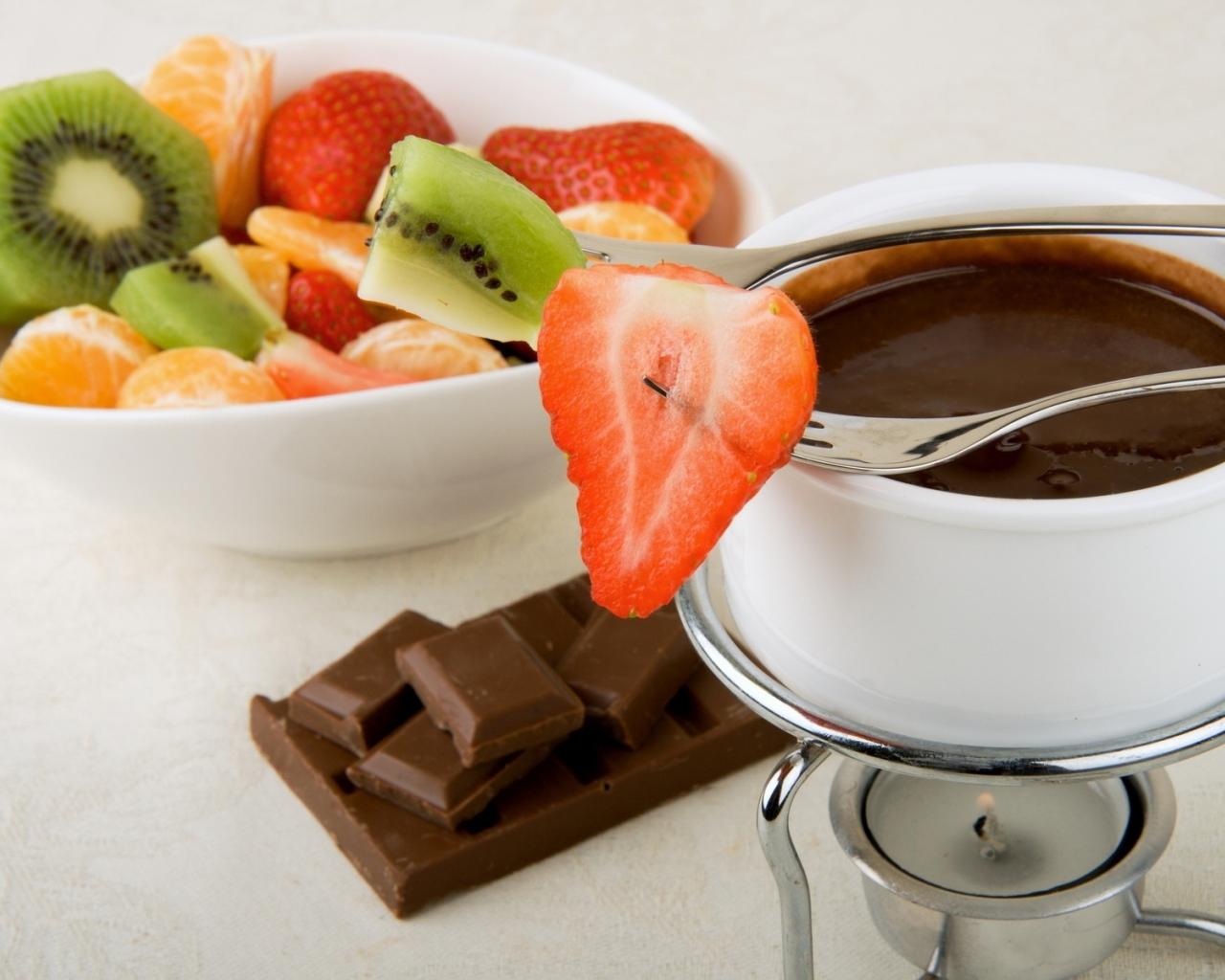 Обои Жидкий шоколад с клубникой и киви