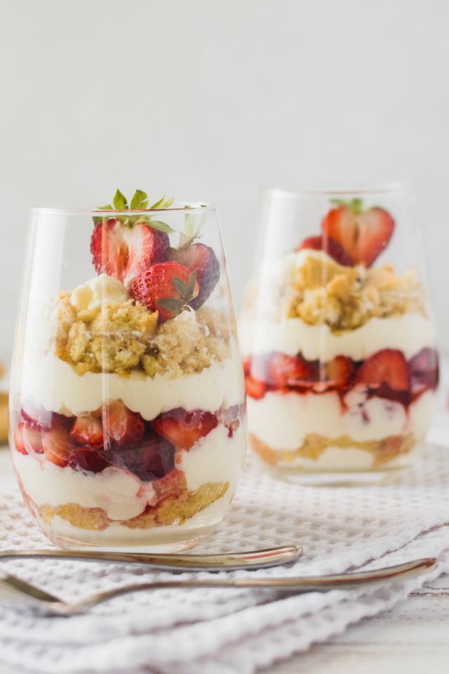 Обои Десерт с клубникой в стеклянных стаканах на столе