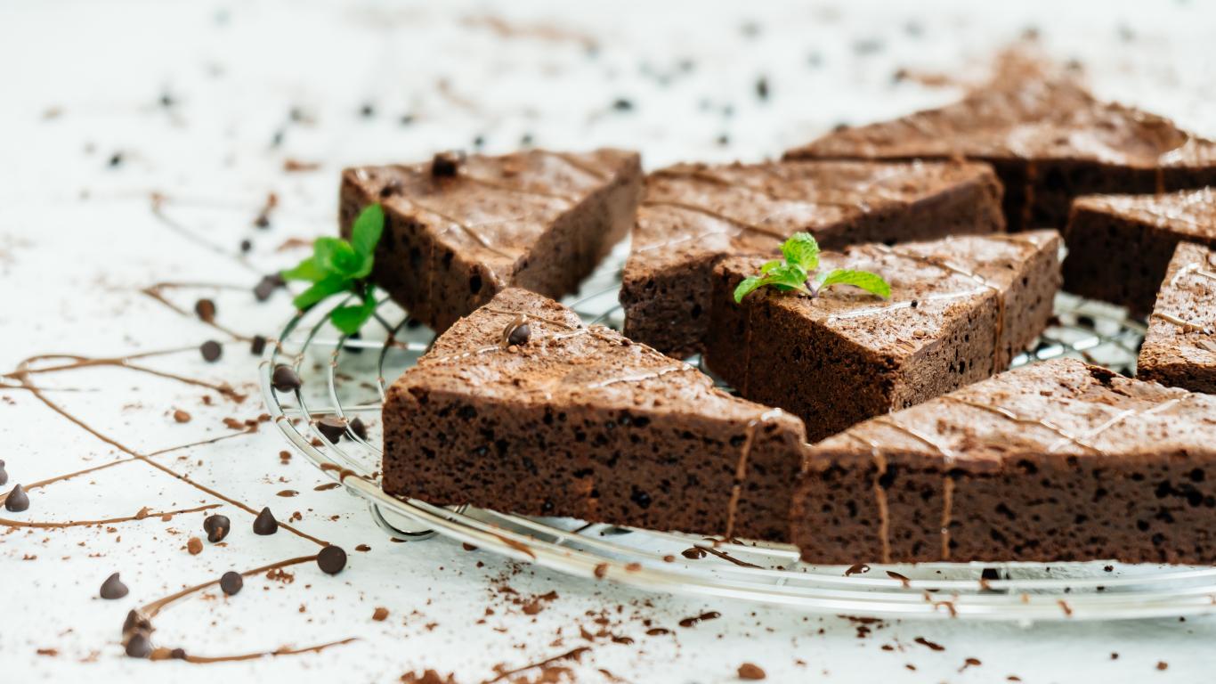 Обои Кусочки аппетитного шоколадного десерта брауни