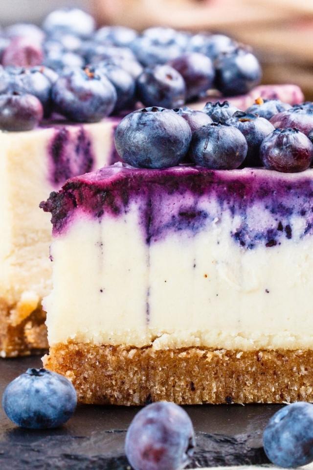 Обои Аппетитный чизкейк с ягодами черники крупным планом