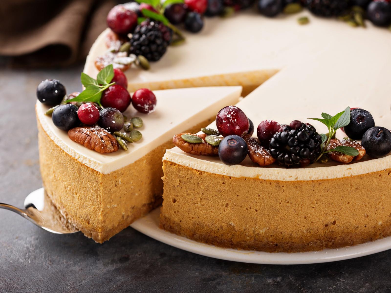 Обои Вкусный пирог с ягодами и орехами крупным планом